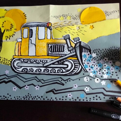 Dílna na výrobu laminovaného prostírání je vhodná pro malé i dospělé fanoušky tvoření. Výhoda této techniky je, že uchová všechny omalovánky, kresbičky, trhané papírky, flitry, nitě, alobal i konfety na mnoho let. Záleží na zadání, vaší představě a tématu akce. Můžeme pracovat s kolážemi materiálů s dokreslováním a hrát si s náhodou, nebo vám navrhneme omalovánku, kde bude třeba … bagr.