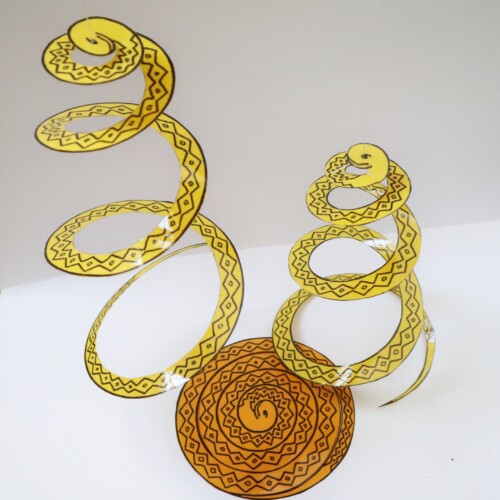 Papírový had je vlastně původně chřestýš. Při přípravě jednoho „indiánského“ dne jsme k výrobku našli hezkou pověst. Indiáni prý věří, že když do místnosti vejde démon nebo zlý člověk, tak kůže z chřestýše zavěšená nade dveřmi začne divoce chřestit… Postupně jsme vyrobili spoustu chřestýšů, užovek, korálovek, zmijí i slepýšů. Dobrá zpráva je, že k nám asi démoni nechodí. Pokud budete chtít hada trvanlivého, nesmrtelného, můžeme ho zalaminovat a může vám hlídat celoročně i zahradu.